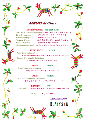 今年も特別に作っていただいたフルコースのメニュー。